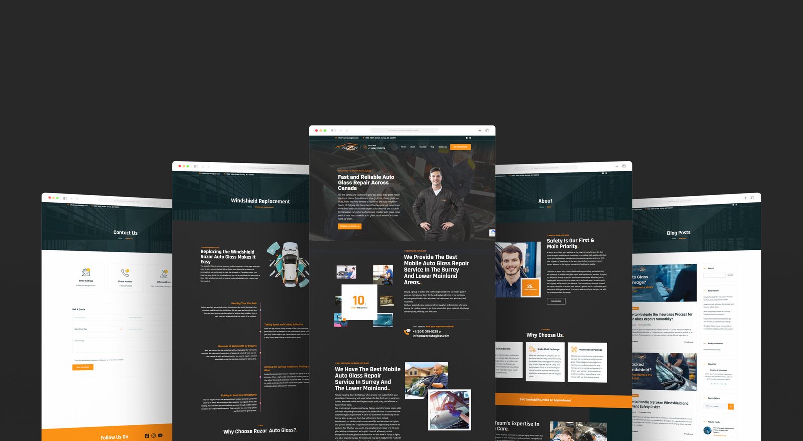 Razor Auto Glass’s website was (re)designed and developed to elevate its brand image and make its auto glass repair and replacement services more accessible, modern, and customer-friendly. The goal was to reflect Razor’s commitment to safety, reliability, and convenience while offering a seamless digital experience for clients across Surrey, Lower Mainland, and surrounding areas.