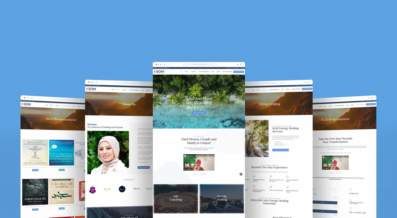 The SOM Life Coaching website was designed and developed to establish a calming, soulful, and transformation-focused digital presence for a holistic coach specializing in personal development, trauma healing, and spiritual alignment.